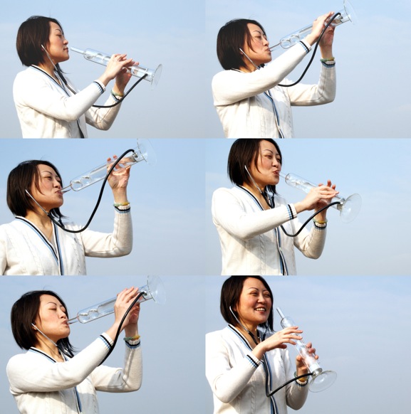 Being in the water is familiar to everyone, but somehow special. It’s like being in another world. In this other world, our senses are directly affected. The slowness, the muffled sounds, gravity, the perception of space, give consistence to this fully interactive environement. These glasses are designed for a drinking place at the exhibition “in water”. By drinking water you can experience how it is to be ‘in water’. One glass is based on the sound and the other on the vision of being in water.