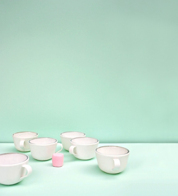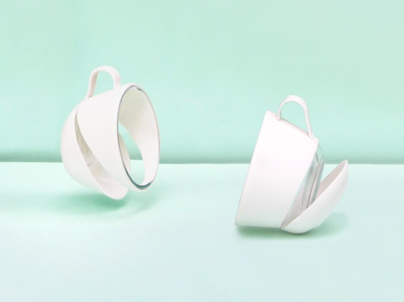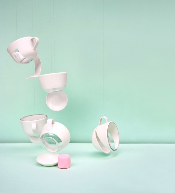 A cup, solid when standing, changes its appearance once lifted. The saucer, initially hidden, reveals itself during use. The cup exists of 2 layers. The inner layer, consisting of glass, reveals the cups contents by it’s transparency.