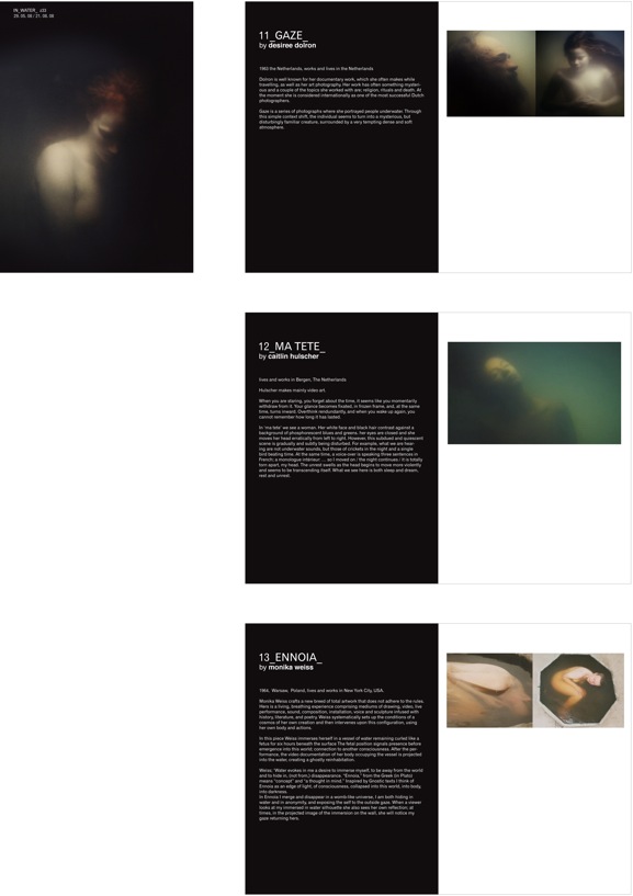 The exhibition “IN WATER” feels like a deep immersion. Balancing between the water surface, sometimes coming up to reach out for air. From ultimate relaxing to deep phobia.