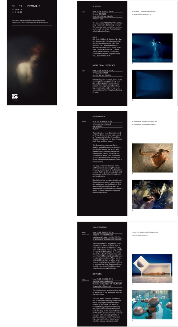 “IN WATER” is a design proposal for an exhibition in art centre Z33 in Hasselt, Belgium.